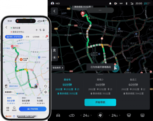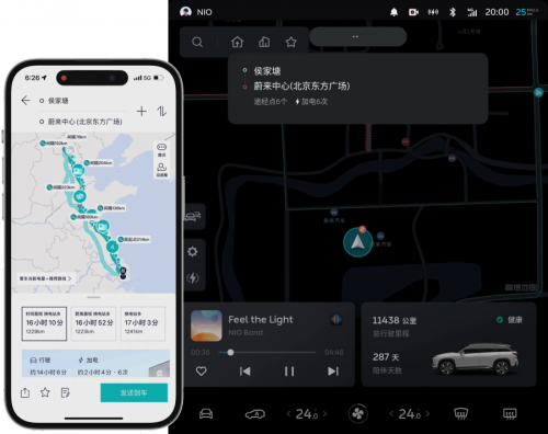 蔚来 App 支持充电地图加电路线一键发送到车机,在充电地图加电旅程内选中路线并点击开始导航后,会自动将路线上规划的加电资源添加为途经点,若路线中包含换电站,会创建自动下单任务,编辑完成路线后可以点击「发送到车」。前提是蔚来 App 需同步升级至 5.17.5 及以上版本。