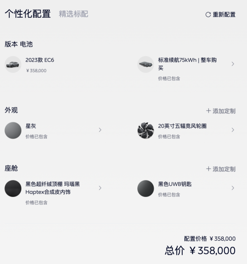 其次,是蔚来为应对当前汽车市场激烈的价格战,早在NT2.0车型产品定义之初,便对SKU数量和产品价格进行了调整。以新款EC6举例,这款车相比较笔者购买的老款EC6,虽然在起售价上似乎差不多,但实际配置则高得多。
