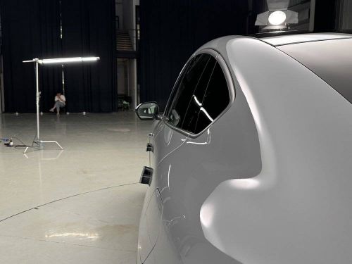 新一代EC6上,蔚来在这一块儿相比较老车要用力得多。从照片中光线反射导致车身颜色变化可以看出,车辆的曲面变化是多么明显。