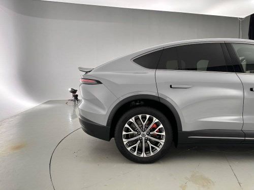 与此同时,新车的大灯部分,蔚来为其加上了直通前轮位置的空气动力学通道。这不仅有利于将前轮处迟滞的气流“带出去”,还能帮助前刹车盘的散热。当然了,这一块儿蔚来的设计比较克制,如果你不蹲下并把眼睛凑到大灯跟前,是发现不了这个细节的。