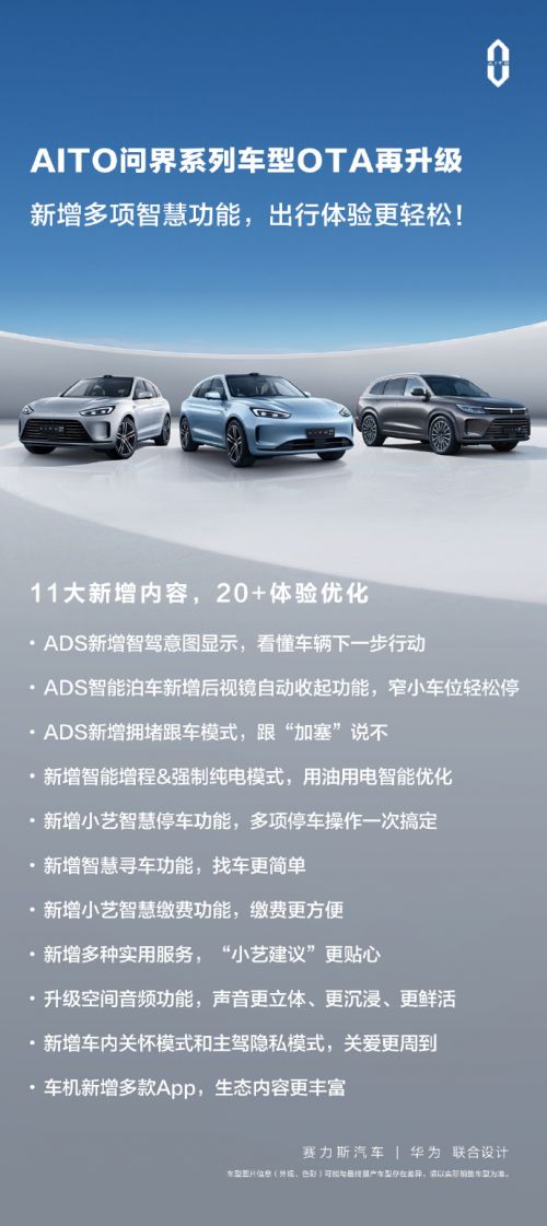 AITO问界系列车型OTA再度进化:11项全新添装,20多项体验优化,再创辉煌