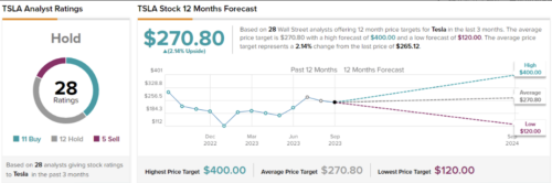 考虑到预期的ASP(平均售价)下降以及价格下降对汽车毛利率的影响,Delaney将2023年和2024年特斯拉的每股收益预期从之前的3.00美元~4.25美元,下调至2.90美元~4.15美元。