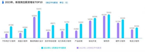 《新能源车人才报告》显示,2023年1~3月,集成电路IC设计岗平均月薪可达9.18万元,汽车电子工程师平均薪酬实现翻番,底盘工程师薪资增长59%,部分技术岗相对2022年同期均出现不同程度的薪资涨幅。