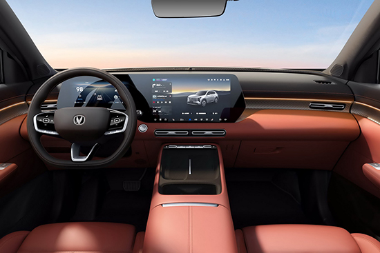 内饰方面,第四代CS55 PLUS采用环抱式座舱布局,T字形中控台以14.6英寸悬浮式屏幕为视觉中心向两侧延伸,强化空间感。方向盘升级为全新造型,并采用电子怀挡设计,释放车内空间。新车搭载天枢OS车机操作系统,支持华为HiCar、苹果CarPlay手机互联,AI语音系统可实现全场景免唤醒词交互。