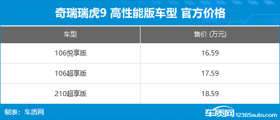 新款奇瑞瑞虎9高性能版上市 售16.59万元起