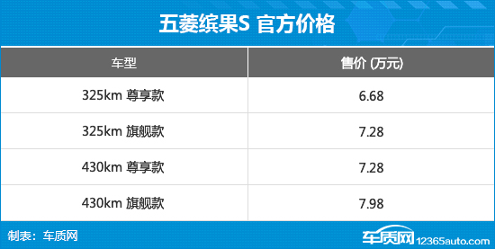 动力方面,五菱缤果S搭载最大功率75kW的前置电机,并配备31.9kWh和41.9kWh的磷酸铁锂电池组,CLTC工况下纯电续航里程分别为325km和430km。