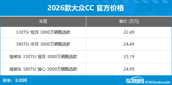 2026款一汽-大众CC上市 售价22.49万元起