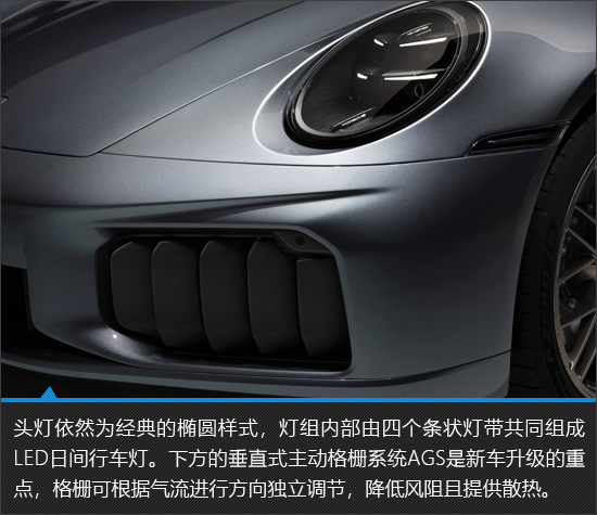 新车依旧保留了经典的家族化设计,椭圆的头灯、饱满的腰身还是熟悉的味道,让人一眼就能辨别出这是一台纯粹的保时捷911车型。细节上,新车加入了可以主动开闭的通风格栅、电控扰流板,进一步优化了整车空气动力学表现。
