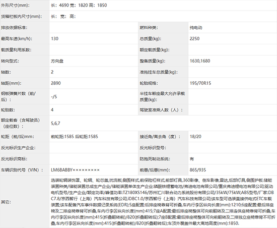 定位纯电中型MPV 鑫源116申报图曝光