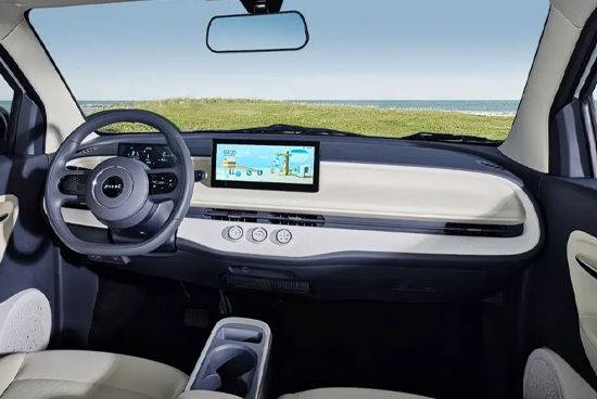外观方面,埃尚A100C采用了圆润小巧的设计风格,蚌式引擎盖搭配封闭式进气格栅,视觉效果精致而富有亲和力。不同于多数微型电动车,新车的车鼻筋线更为突出,强化了前脸的立体层次感,配合圆形头灯组,整体造型在“呆萌”中又透出一丝俏皮的“凶狠感”,颇具辨识度。