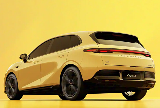 新车侧面比例适中,配上无边框车门、隐藏式门把手以及黑色外后视镜壳等设计,科技感更强。同时,新车还配备19英寸黑色运动轮毂,进一步提升了车辆运动感。尾部贯穿式尾灯组造型与车头呼应,“LEAPMOTOR”标识位于尾门中央,整体看起来辨识度较高。车身尺寸方面,新车的长宽高分别为4430mm*1880mm*1520mm,轴距为2735mm。