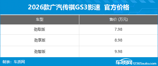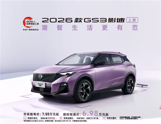 2026款广汽传祺GS3影速上市 售7.98万元起