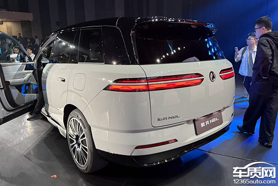 尾部造型圆润且饱满,两侧尾灯组造型与腾势Z9非常相似,扁平且狭长,有效拉宽了车尾宽度,看上去更稳重。值得一提的是,新车可通过脚踩地面上的AR投影实现后备厢感应开启。