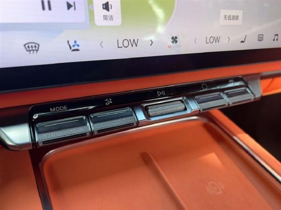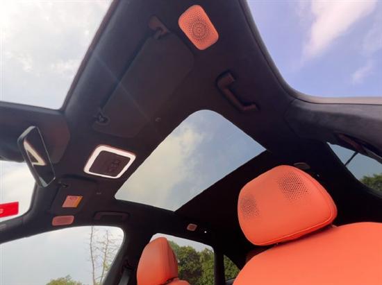 顶棚包覆的麂皮绒采用了旗舰车型9X相同的麂皮绒料,触感细腻柔软,提升了内饰的豪华质感,门板内侧以及相连的中控台部分都是皮质包裹,中控台面则采用软性材质包覆,用料厚道。
