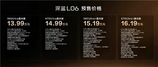深蓝L06正式开启预售,新车共推出4款车型,预售价区间为13.99-16.19万元。