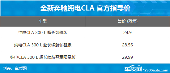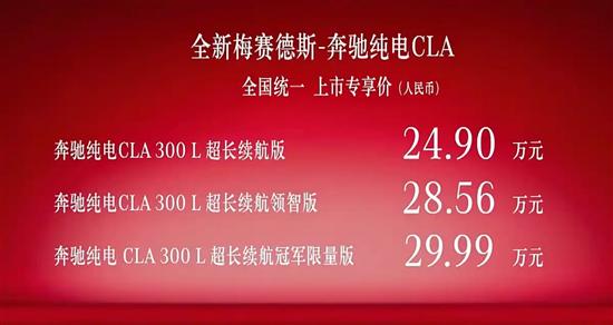 全新奔驰纯电CLA上市 售价24.9-29.99万元