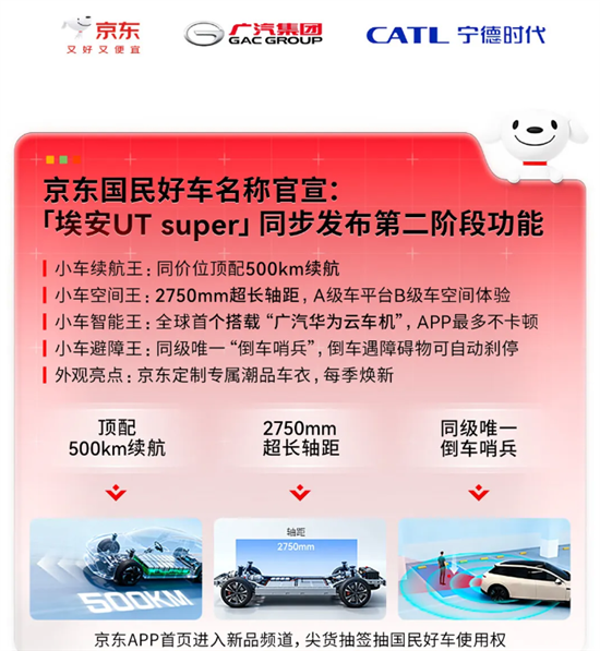 10月23日,京东联合广汽集团、宁德时代推出的“国民好车”车型名称正式官宣定名——“埃安UT super”,并同步释放新车4大核心功能点。