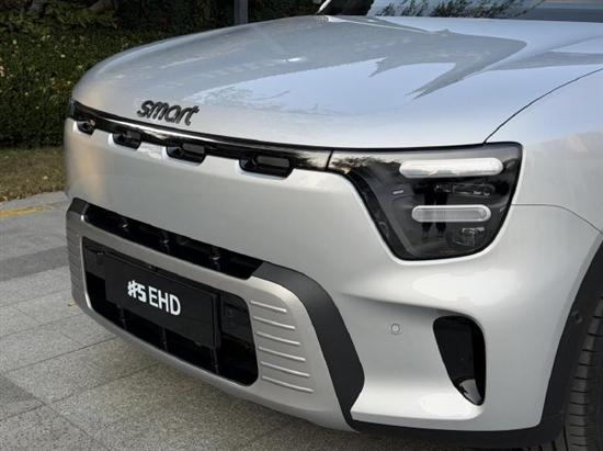 外观方面,smart精灵#5 EHD延续了纯电版标志性的“时空胶囊”设计语言,却在细节处暗藏混动身份的专属密码。六边形封闭式前格栅保留了新能源车型的科技感,取消了蜂窝状装饰板,采用横向线条设计看上去更加简洁。