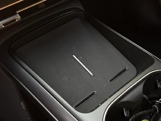 双层中央岛台下方预留了充足的储物空间,可容纳手提包等物品,而岛台表面全系标配50W无线充电板,iPhone与安卓机型均可适配。