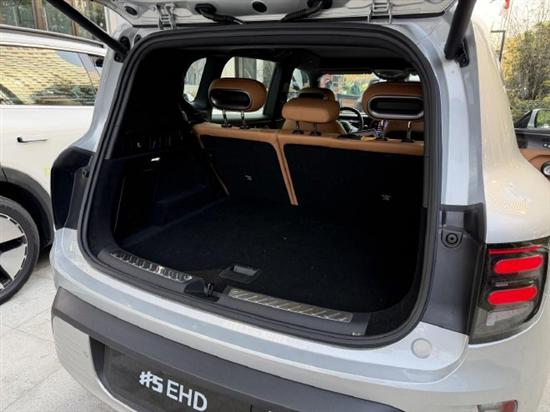 作为一款中型SUV,精灵#5 EHD凭借2900mm的超长轴距与纯电平台的空间优势,实现了85%的得房率,空间表现远超同级别竞品。全车座椅的填充软硬适中,前排座椅的侧向支撑到位,过弯时能有效固定身体姿态。驾驶位座椅支持8向电动调节+4向支撑调节,身高180cm的驾驶者也能找到舒适的坐姿。座椅前方的腿部空间充裕,方向盘支持上下+前后调节,能适配不同身材的驾驶者。