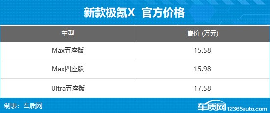 新款极氪X正式上市 售价15.58-17.58万元