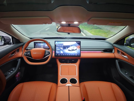 内饰部分,新车同样延续了简雅的环抱式内饰设计,配上8.8英寸液晶仪表和15.6英寸中控屏,使车内看起来更具科技感。配置上,新车标配倒车影像、一键启动、电池预加热、LED远近光灯、自动大灯、不可开启全景天窗、手动防眩目内后视镜、自动空调等配置。值得一提的是,800V超快充版车型还会配备前排座椅电动调节、加热和通风功能。