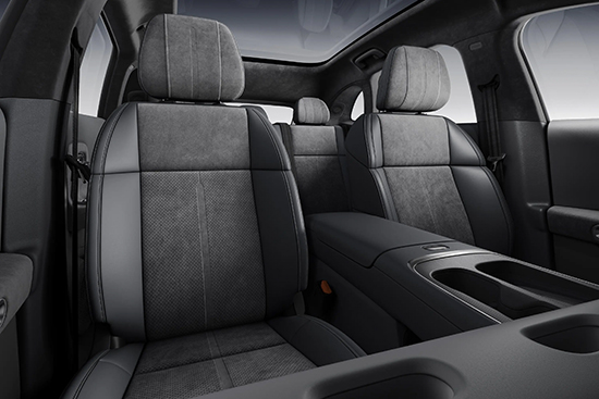 内饰方面,零跑Lafa5采用长条形液晶仪表搭配大尺寸悬浮式中控屏的设计,副驾驶前方配备魔术扩展台,提供多个开孔,可以随意拼装各种周边产品,从而实现不同功能。高配车型顶棚与座椅采用真皮+仿麂皮超纤绒材质,并压印赛道纹理与Lafa5专属字体。