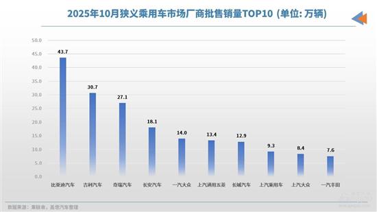 以10月份的国内汽车厂商批售销量榜单为例,车企最新的销量排名,就如同一面多棱镜,折射出技术路线之争、品牌价值重塑、供应链体系重构与全球化战略分野的复杂图景。