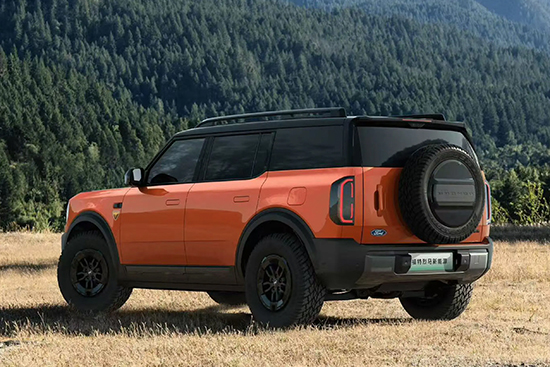 外观方面,福特智趣烈马采用经典的“方盒子”造型,保留宽厚的车头、外挂式备胎、侧开式尾门等经典设计,凸显美式肌肉感。前脸采用新能源风格熏黑格栅,配备可点亮的“BRONCO”品牌标识,提升科技感与辨识度。
