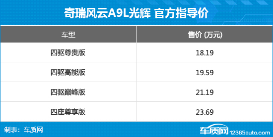 奇瑞风云A9L光辉上市 售价18.19-23.69万元