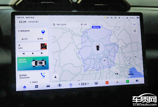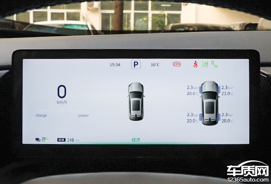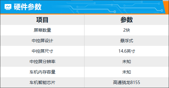 评测车搭载的硬件配置比较常规,14.6英寸悬浮式中控屏显示效果清晰,内置高通骁龙8155芯片,操作流畅性表现尚可,实测过程中并未出现卡顿。全液晶仪表尺寸为10.25英寸,界面设计简约清爽,能够显示丰富的行车信息。