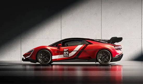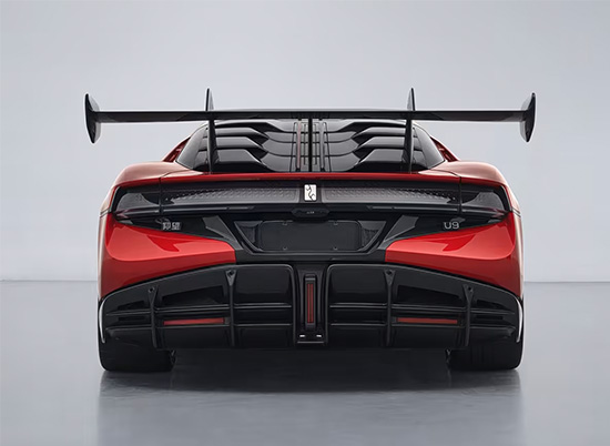 车尾部分采用层次更为复杂的空气动力学设计。后窗区域呈现多层式“鳞片”结构,以改善高速气流导向;大尺寸鹅颈式后翼同样由碳纤维制成,能在高速下提供稳定的下压力。尾灯呈双段式布局,后扩散器为双层结构,尺寸极为夸张,进一步提升高速循迹能力。