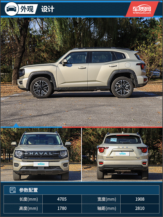 作为二代大狗的中期改款车型,外观依旧延续了“心潮力量美学”设计理念,直观感受就是比传统城市SUV更硬朗,比硬派越野车更时尚。车侧保留了硬朗风格,粗犷的轮眉加上外露铆钉,颇具越野范儿。