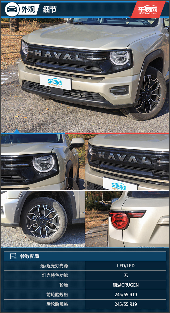 此外,评测车搭载了锦湖CRUGEN系列轮胎,主打静音舒适与湿地抓地性能,轮胎规格为245/55 R19。