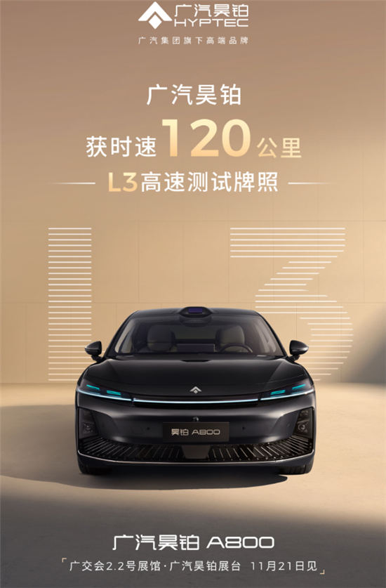 广汽昊铂斩获首张120km/h L3高速测试牌照