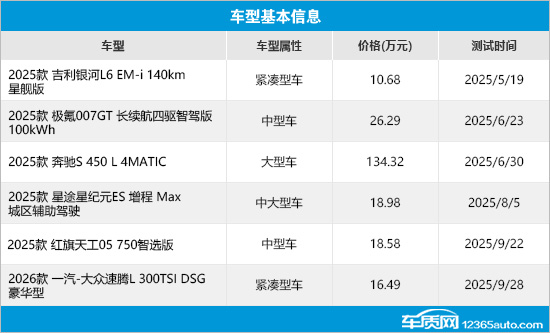 本期选取的6款车型包括2款紧凑型车、2款中型车、1款中大型车和1款大型车,涵盖自主、合资以及进口车型,既有传统燃油车,也有新能源车。