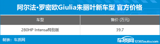 Giulia朱丽叶INTENSA版上市 售价39.7万元