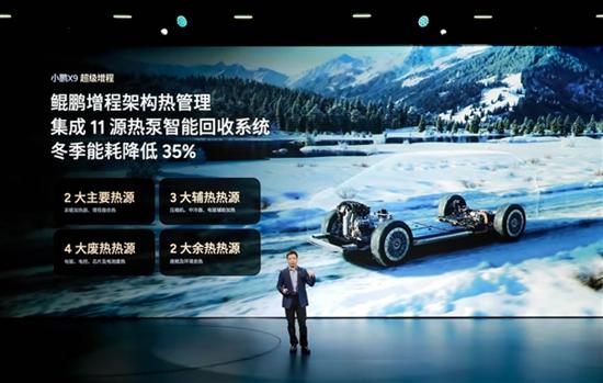 为应对北方严寒气候,小鹏X9超级增程还搭载11源热泵智能回收系统,可高效回收动力系统及各部件余热,显著提升冬季续航表现。