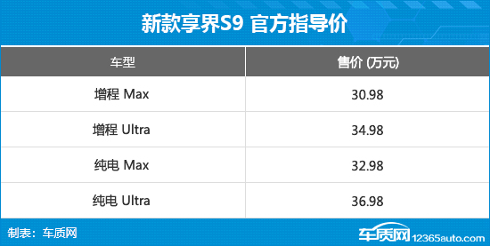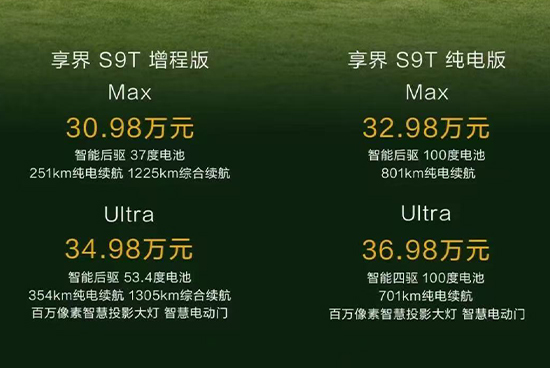 11月20日,新款享界S9正式上市,新车共推出4款车型,官方指导价区间为30.98-36.98万元。同时,官方还推出至高15000元购车补贴方案。