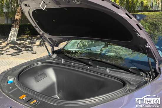 前备厢盖的开启开关位置位于驾驶位前部左下方,开启时需要先拉动开关两下,然后直接抬起前备厢盖即可开启。前备厢盖采用双液压杆支撑,稳定性好,开启和关闭过程都比较省力。