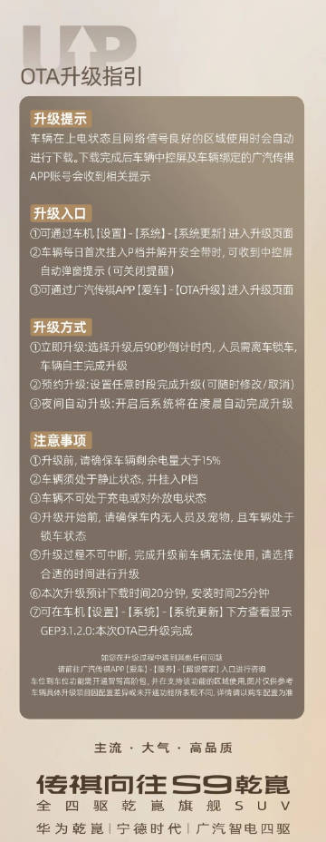 多项升级优化 传祺向往S9乾崑迎OTA升级