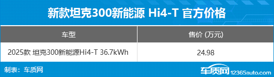 日前,2025款坦克300新能源Hi4-T 36.7kWh正式上市,售价和现款车型保持不变,官方指导价为24.98万元。新车作为新增车型,主要针对电动机性能和电池进行了升级。