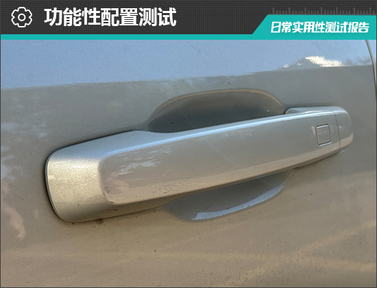 评测车配备前排无钥匙进入功能,驾驶者只需携带智能钥匙靠近车辆,将手伸进门把手内侧便可感应解锁,锁车时只需触碰门把手上的感应区即可,实测解锁和上锁过程均十分顺畅;同时,评测车还支持蓝牙钥匙和遥控钥匙。一键启动按键位于转向柱右侧,位置合理且标识清晰,日常操作十分方便。