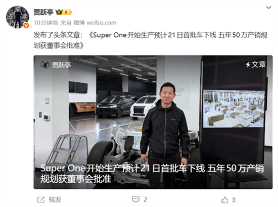 至此,首批下线的Super One预量产车所需的全部零件已经到齐,每辆单车包含近3000个零部件,明天将正式启动生产。