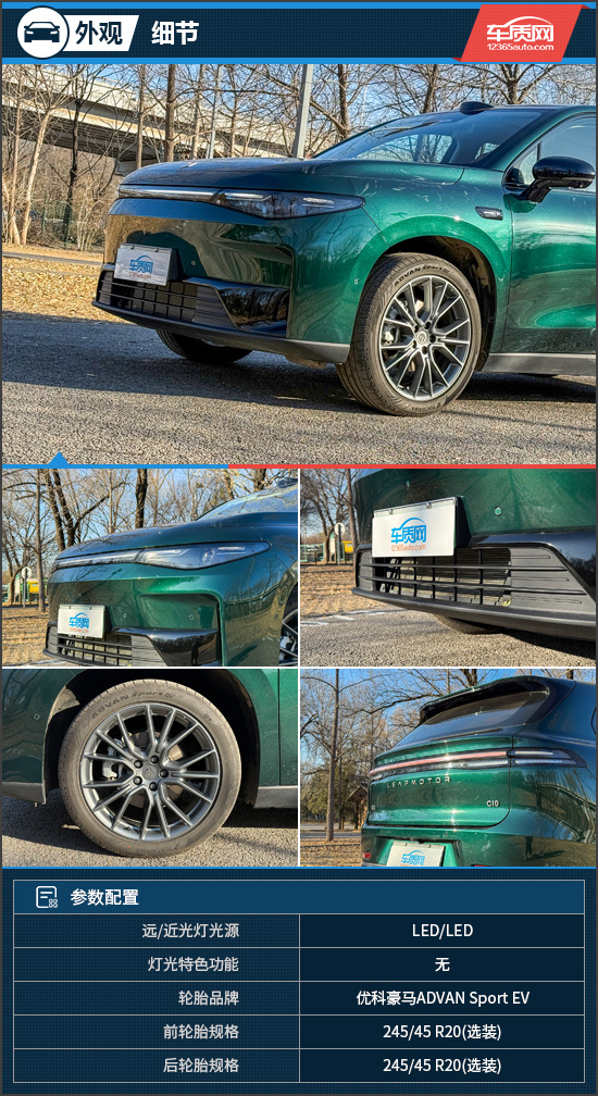 细节方面,封闭式前脸和贯穿式LED大灯组,呈现出新能源车型特有的未来感。车顶处则安装了激光雷达,用于高级别辅助驾驶。尾部造型饱满,尾灯组与头灯相呼应,底部则配有零跑的英文名称。