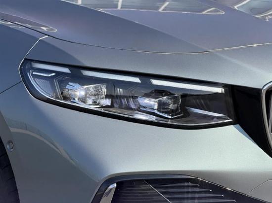 两侧LED自适应远近光灯组造型凌厉,内部透镜结构精致,配合三段式脉冲日行灯,点亮后辨识度十足,而鲲鹏之翼迎宾光毯的加入,让上下车仪式感拉满。