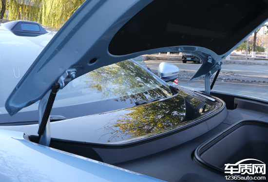前备厢盖的开启开关位于驾驶位前部左下方,开启时需要先拉动开关两次,然后直接抬起前备厢盖即可。内部配备双侧液压支撑杆,稳定性好,并且开关也比较轻松省力。
