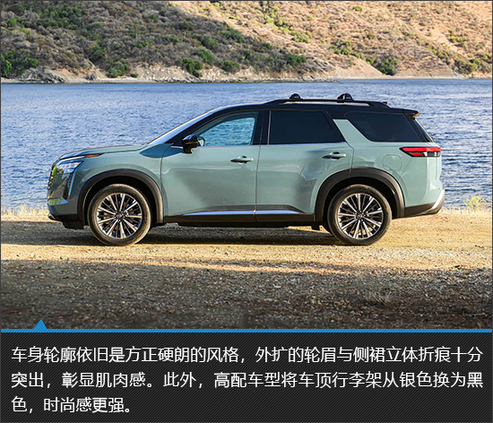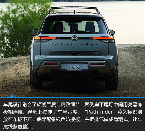 在外观上,新款日产Pathfinder在延续硬派基因的同时,精致感全面升级。前脸通过熏黑格栅、科技化灯组,塑造霸气且具未来感的视觉冲击;车身以硬朗轮廓为骨架,融入悬浮车顶等潮流设计,平衡力量感与时尚感;车尾则凭借时尚的尾灯、隐藏式排气等细节,让硬派风格与精致感形成强烈共鸣,整体实现了硬派SUV在设计维度的质感跃迁。