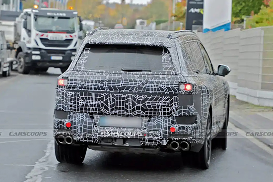 尾部方面,结合最新的谍照,全新宝马X7或将采用与宝马iX3造型类似的尾灯组,并配备双边双出的排气,以此推断该车型或为混动版本。