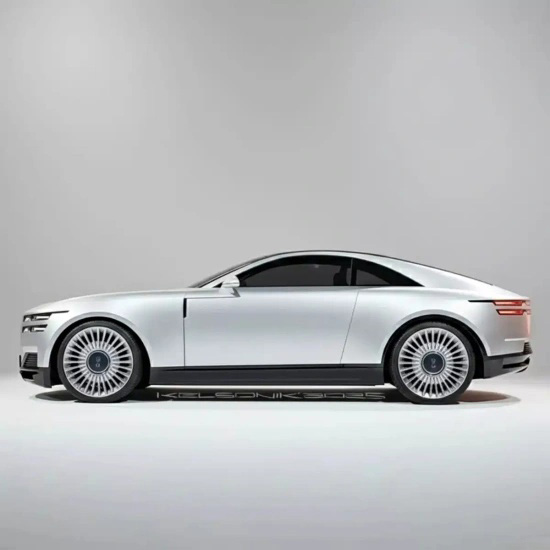新车侧面采用溜背式造型,与劳斯莱斯闪灵的线条颇为相似。同时,新车还采用了双门设计,并配有大尺寸密条辐式轮毂,看起来更具豪华感。